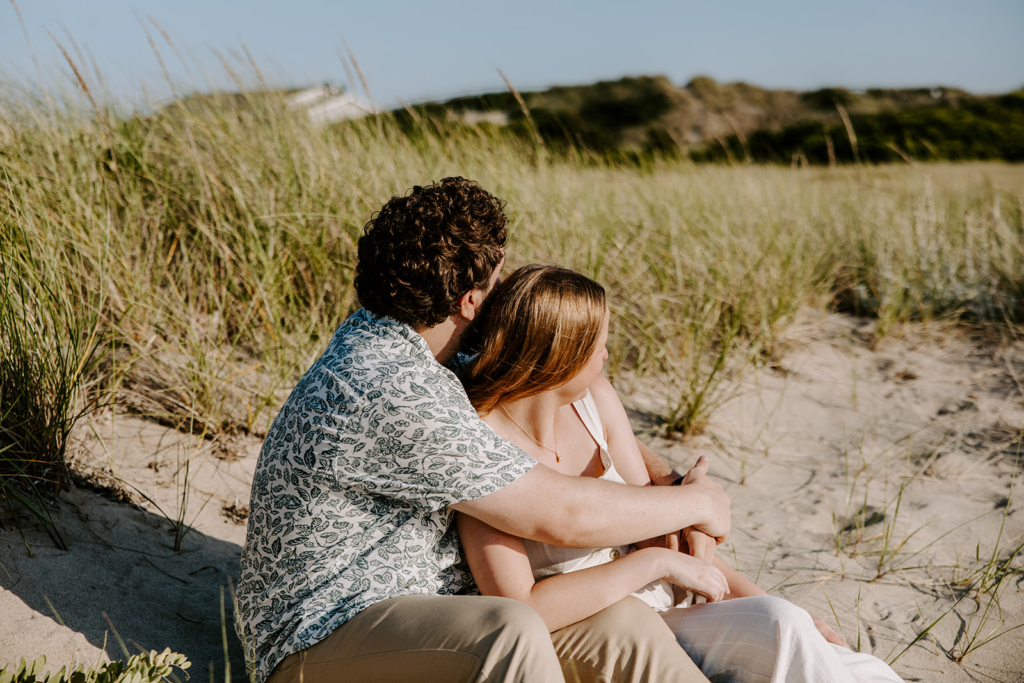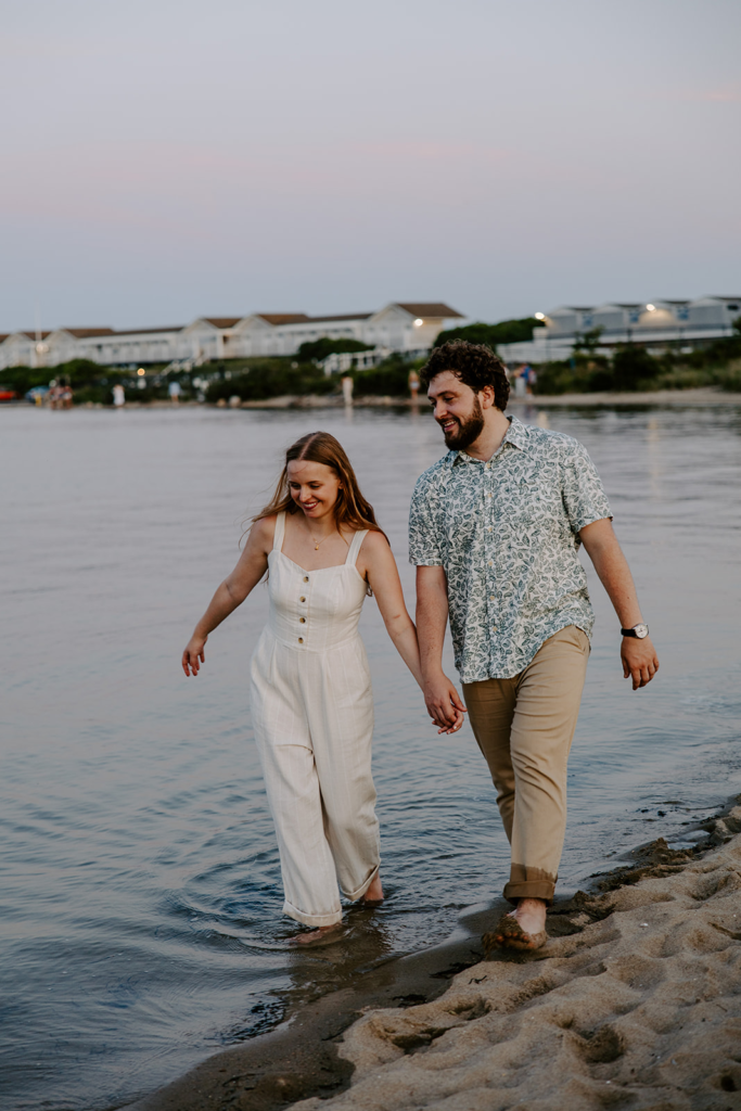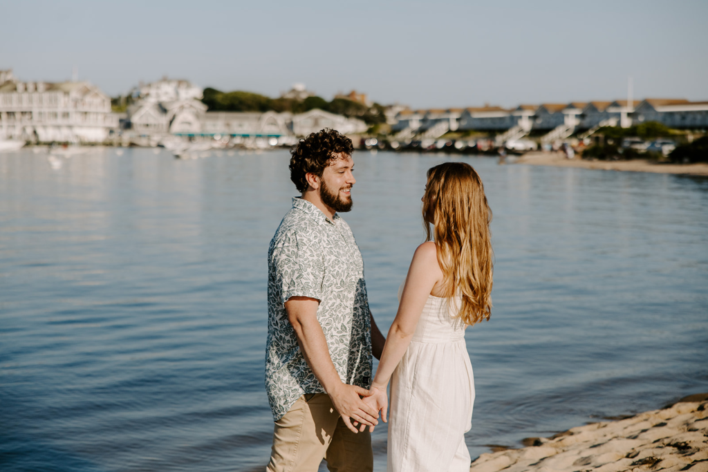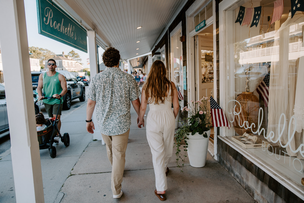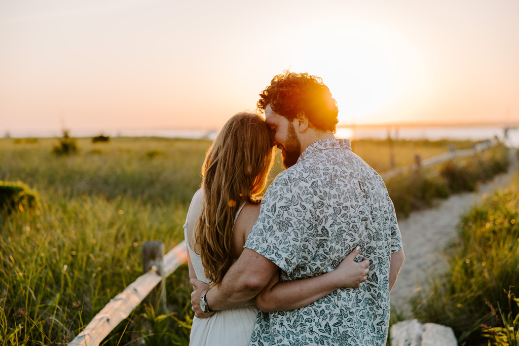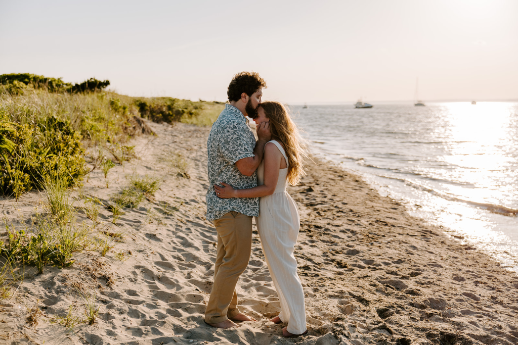 I met Melissa and Khalil at Napatree Point in Watch Hill the day before summer solstice — which meant the longest light of the year, a beach absolutely buzzing with summer energy, and a golden hour that felt like it lasted forever. There were people everywhere. Families, dogs, music drifting over from a live concert somewhere in the distance. It had that perfect chaotic end-of-a-perfect-day feel.