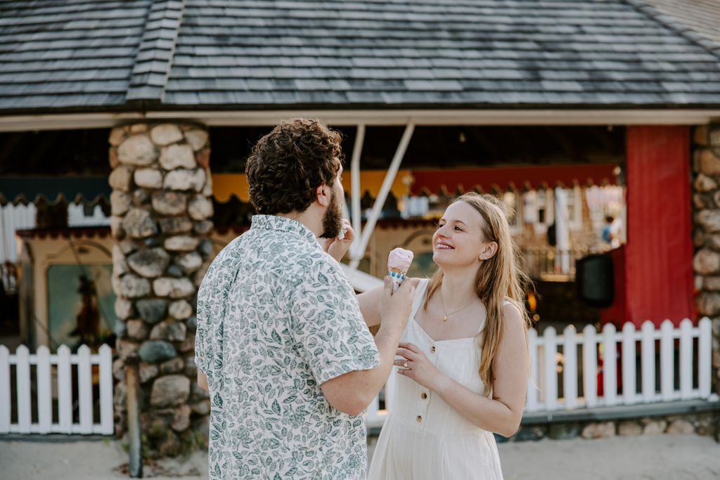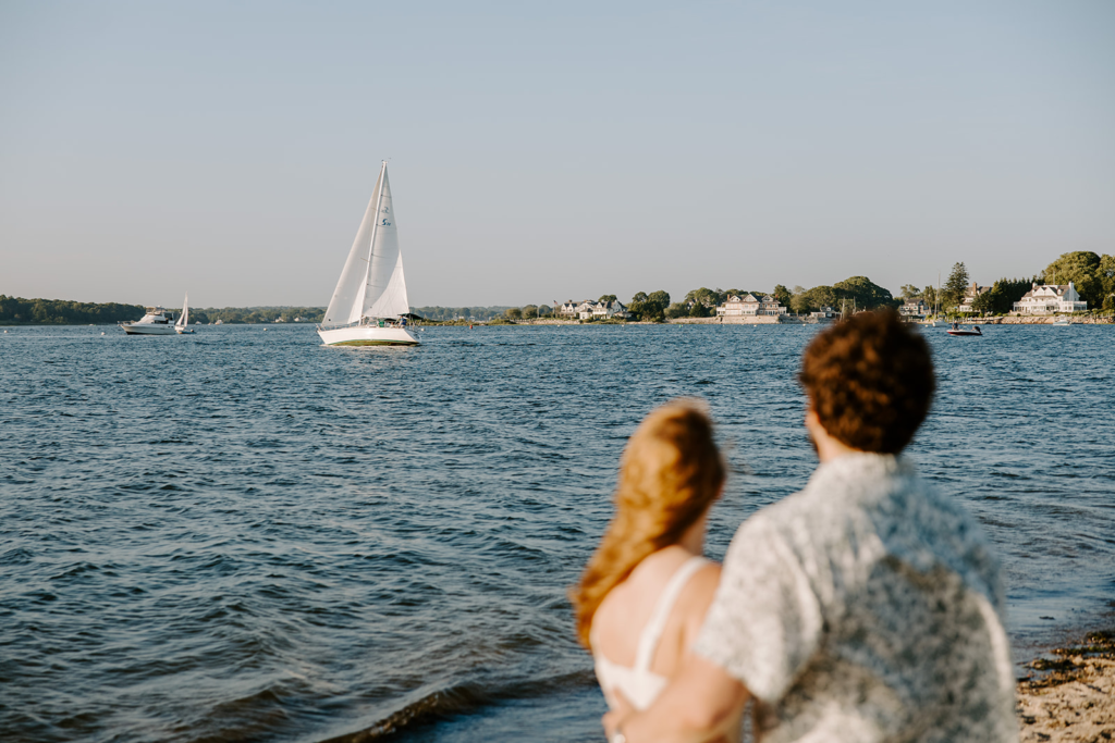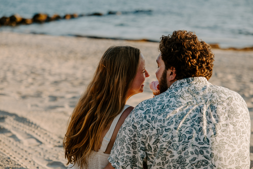 Napatree is a great example of what it actually looks like. We walked. We got ice cream. We found a quiet stretch of beach away from the crowd and just existed in it together. My job was to stay close, stay quiet, and keep shooting. The best frames weren't planned — they were Khalil reaching for Melissa's hand, both of them laughing at something, the light hitting just right while they were looking out at the water. I'll still prompt you and make you feel super comfortable, to capture genuine and natural emotions and reactions.