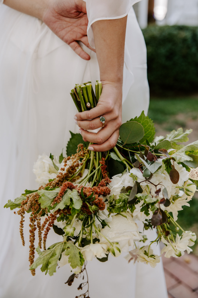 Allison and Chase aren't strangers to my camera. Last winter we headed to the Sandwich Beach boardwalk for their engagement session — golden hour on the beach, their two dogs, Allison's green diamond catching the last of the light. A green diamond set alongside an heirloom ring. It is so completely, perfectly her.