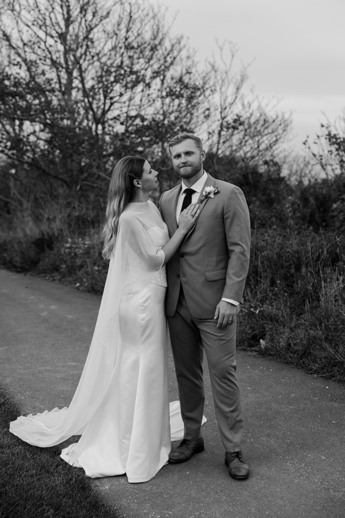 My favorite stretch of the day. We walked there from the church, passing the spot where Allison and Chase first met, and I just kept shooting. The Bluff Walk is timeless — roses on cottage fences, the bluff dropping to the water, afternoon light coming in low. We did portraits, but the frames I keep coming back to are the candid ones. Two people who just got married, taking it all in, walking together for the first time as husband and wife.